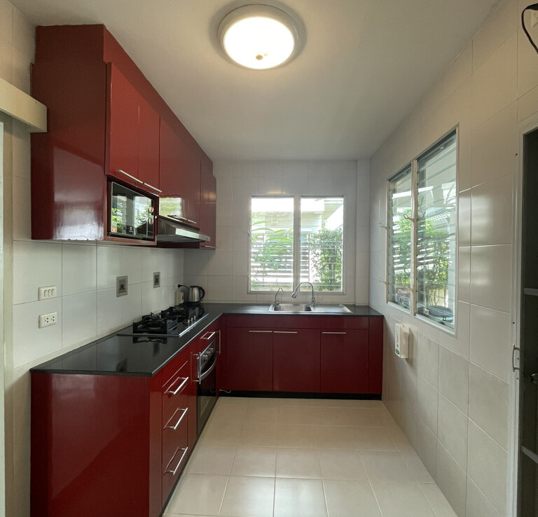 This well-maintained and spacious home is ideal for a couple or a small family. The rental price includes garden maintenance. Residents of the development can also enjoy excellent shared facilities, including a swimming pool, indoor badminton courts, tennis courts, a gym, and 24-hour double-gated security.
