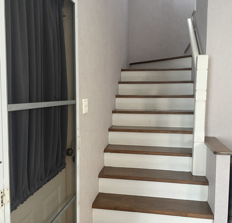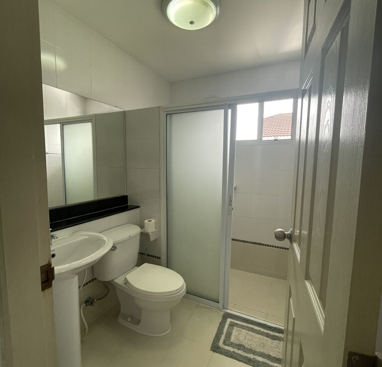 Upstairs, you’ll find a generous open space that can be used as a study area or family zone. The master bedroom is spacious and comes with an en-suite bathroom featuring a walk-in shower. There are two additional bedrooms—one with a double bed and the other with a single bed. Both rooms have built-in wardrobes and share the main bathroom, which also includes a shower.