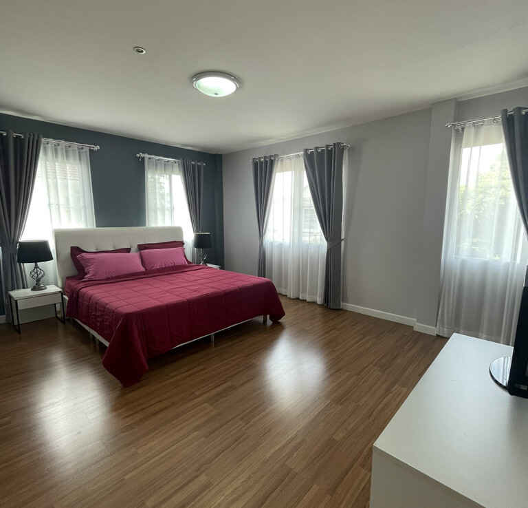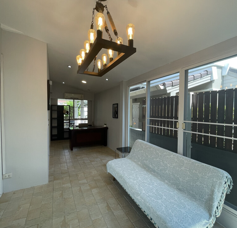 A lovely 3-bedroom family home is available for sale or rent, fully furnished and ready to move in. It is located in a quiet residential lane within the Land & Houses Park community in Sansai, Chiang Mai. The property is just a 10-minute drive from Tonkla School, with convenience stores, cafés, and restaurants nearby. Ruamchok is approximately 15 minutes away, while NIS International School, hospitals, and Central Chiang Mai can be reached in about 20 minutes. Chiang Mai International Airport is around a 30-minute drive.