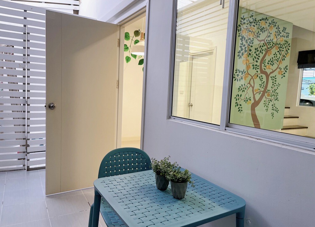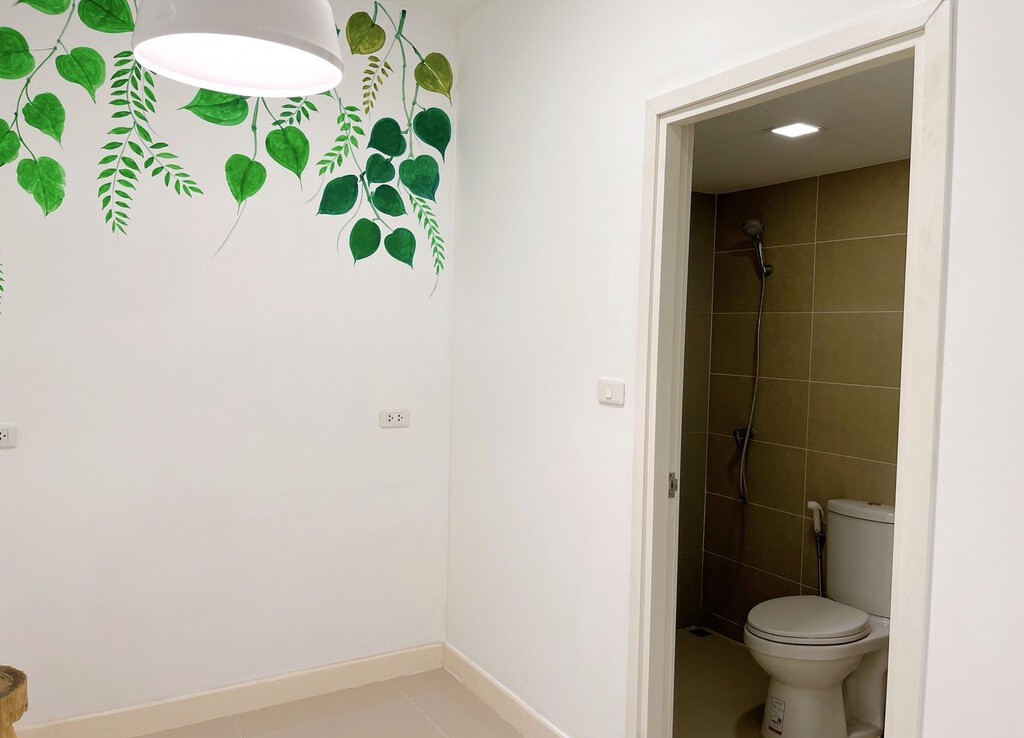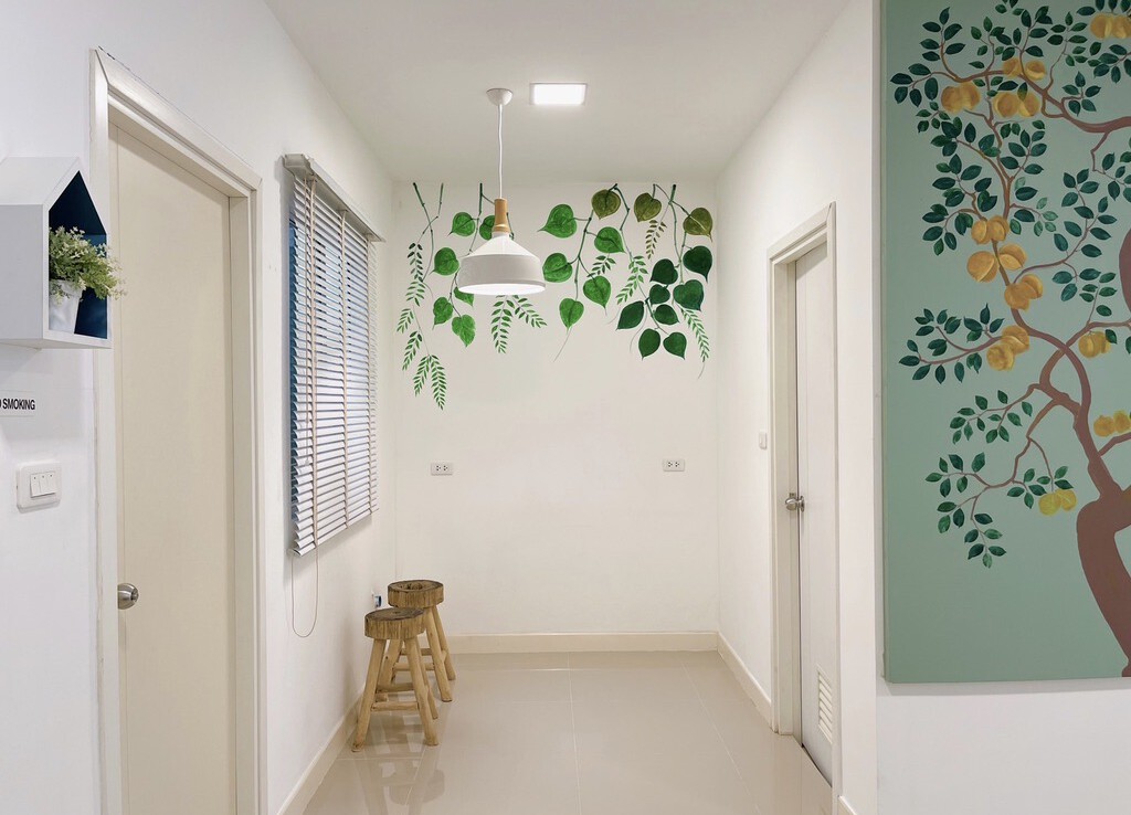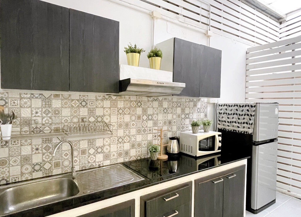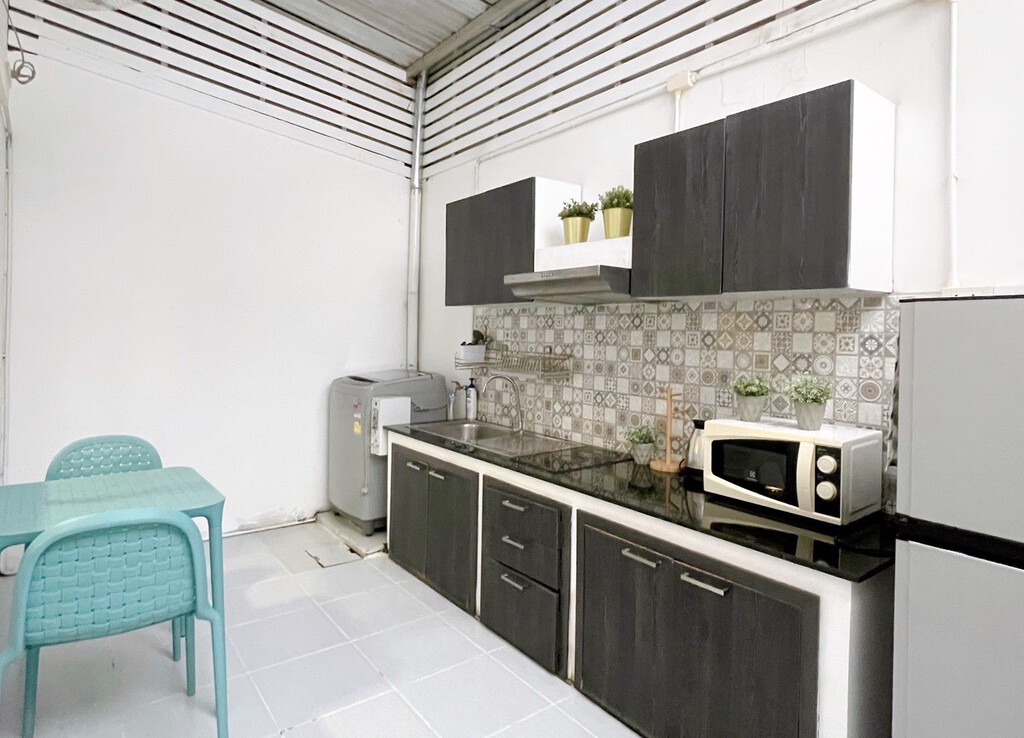 The house is fully furnished with Western style kitchen, hand painted walls feature, parking and a/c. The estate offers green area, auto access card, security and CCTV.