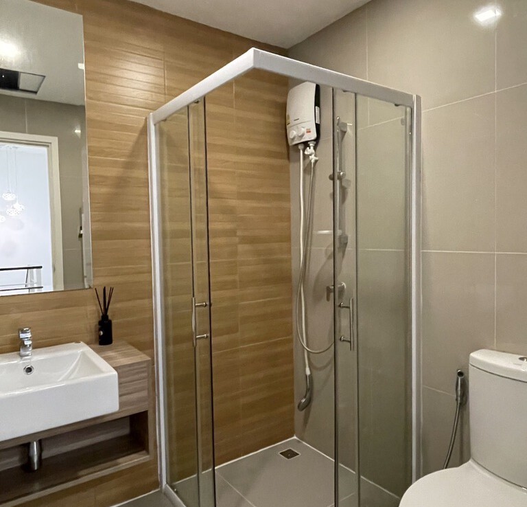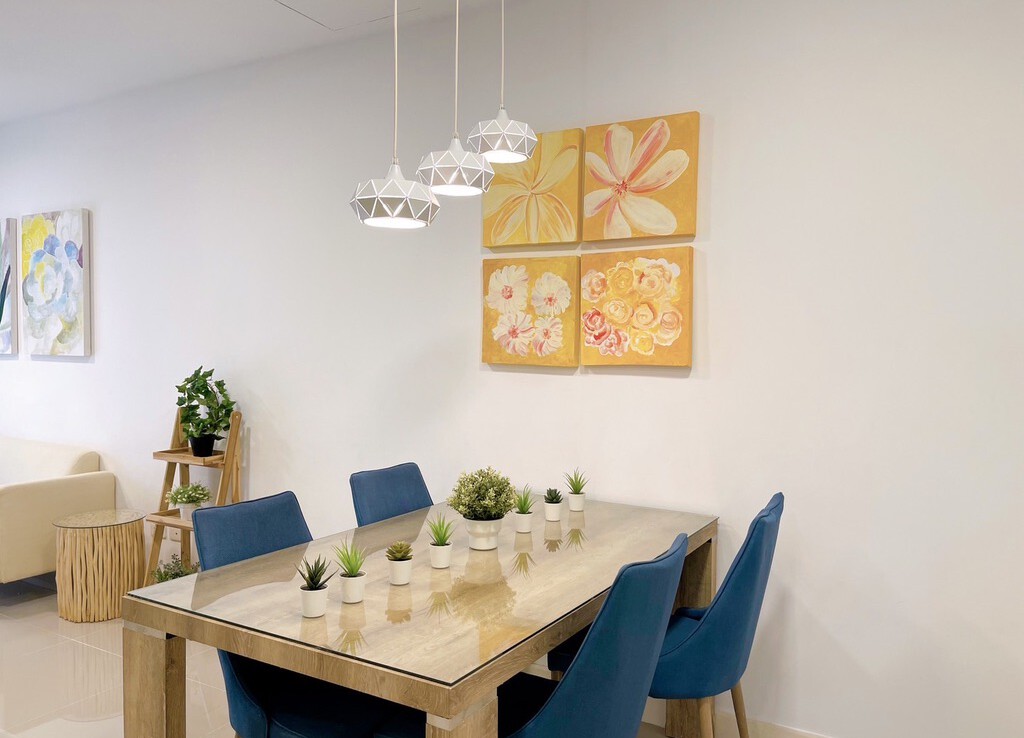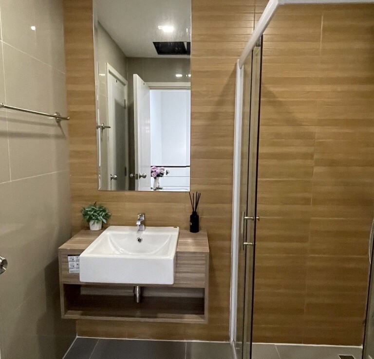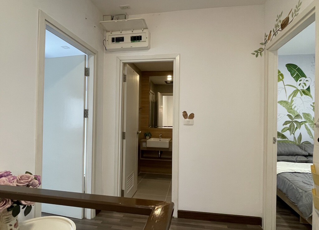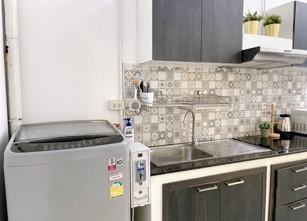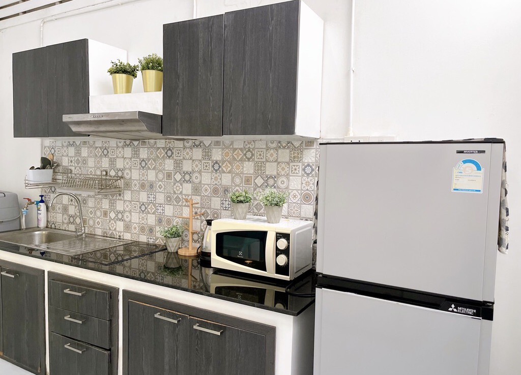 The house is fully furnished with Western style kitchen, hand painted walls feature, parking and a/c. The estate offers green area, auto access card, security and CCTV.