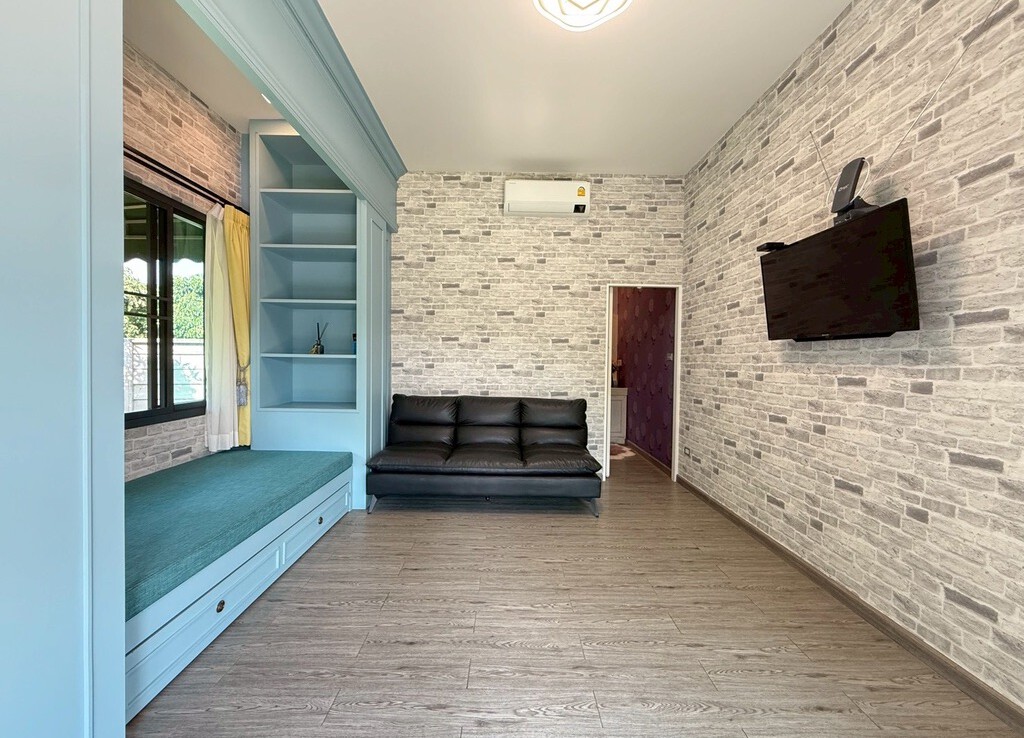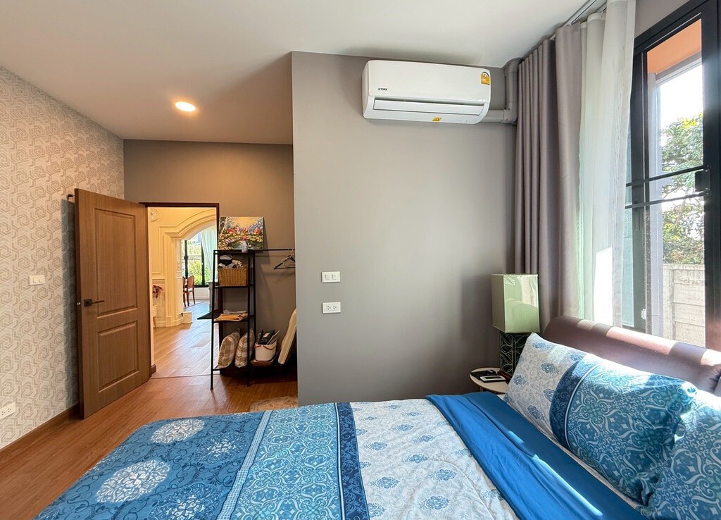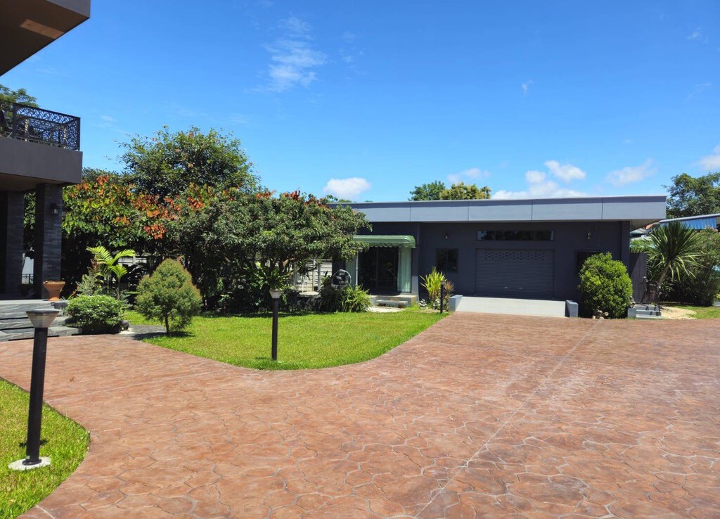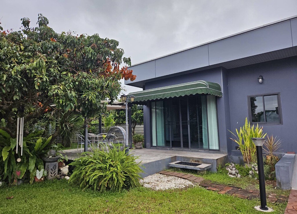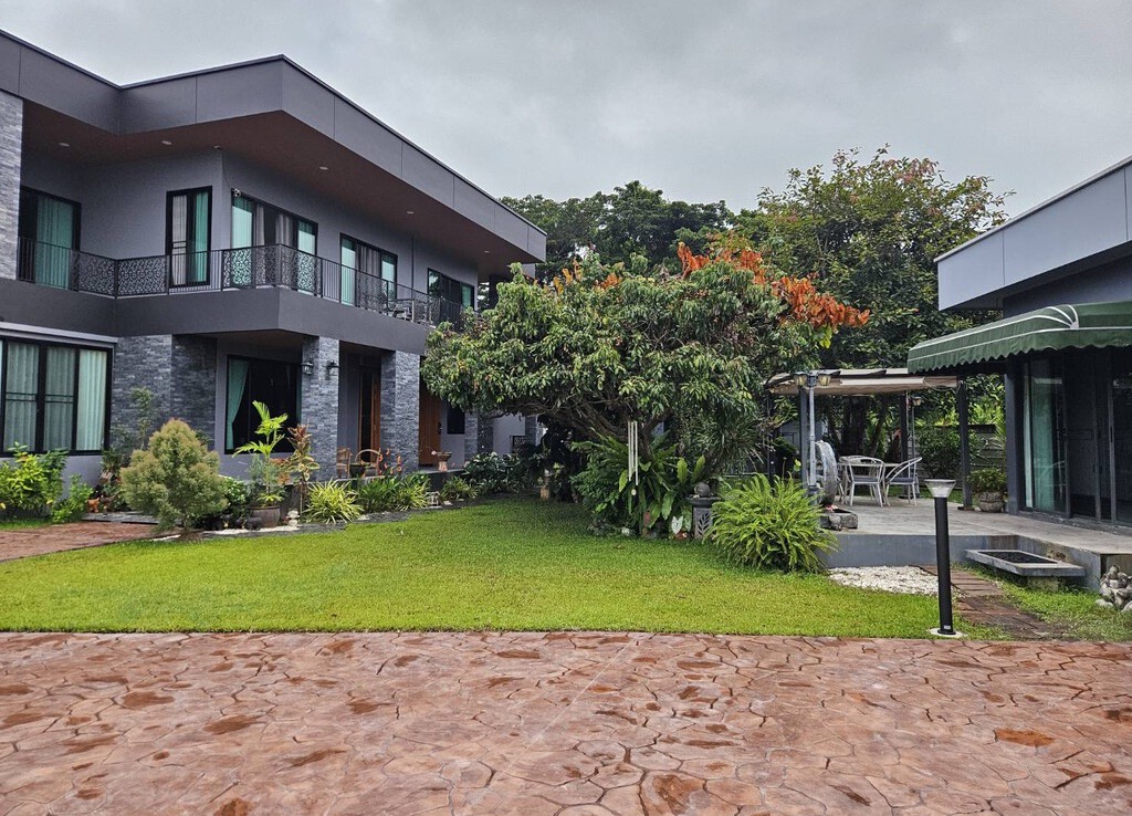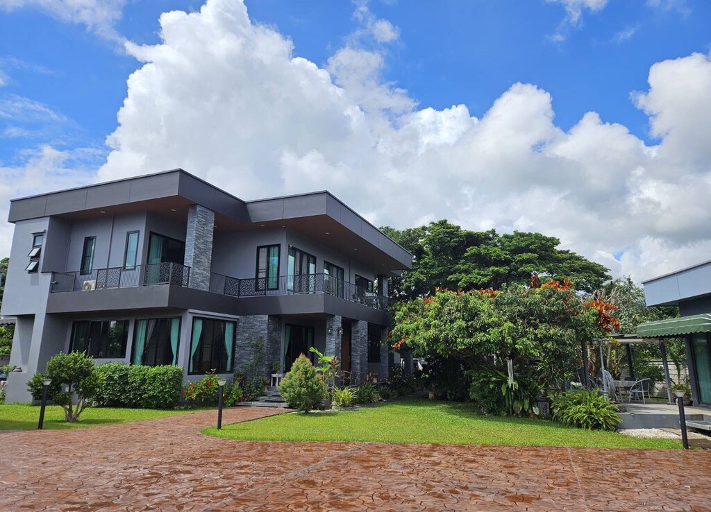 Smart modern style custom built 5 bedroom house with large land is for sale fully furnished in Hang Dong area of Chiang Mai. Occupying just under 1 rai (1600sqm) of land the house is situated amidst tranquil greenery yet within a short driving distance to several international schools. Kad Farang, Big C, fresh market and hospital are all within 10 minutes drive away. About a 30 minutes drive to the airport.