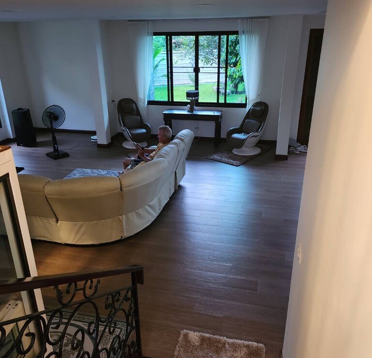 The house is set back from the main gate and surrounded by a beautiful lawn and landscaped garden that could hold a party of 150 people! Smart looking driveway leads up to the garage with parking spaces for 3 cars and with an attached bathroom. There is a cozy one storey guest house with one bedroom, one bathroom and a large multipurpose room that could be turned to a gym, an entertainment room or an office for instance and a cute patio. There is also a 2 bedroom maids quarter complete with a kitchen.