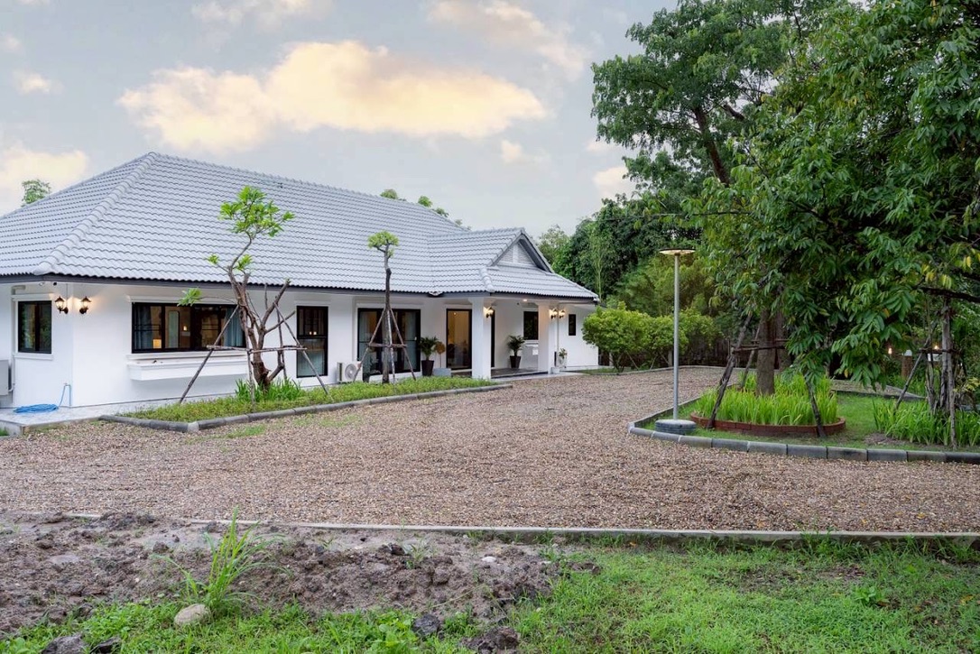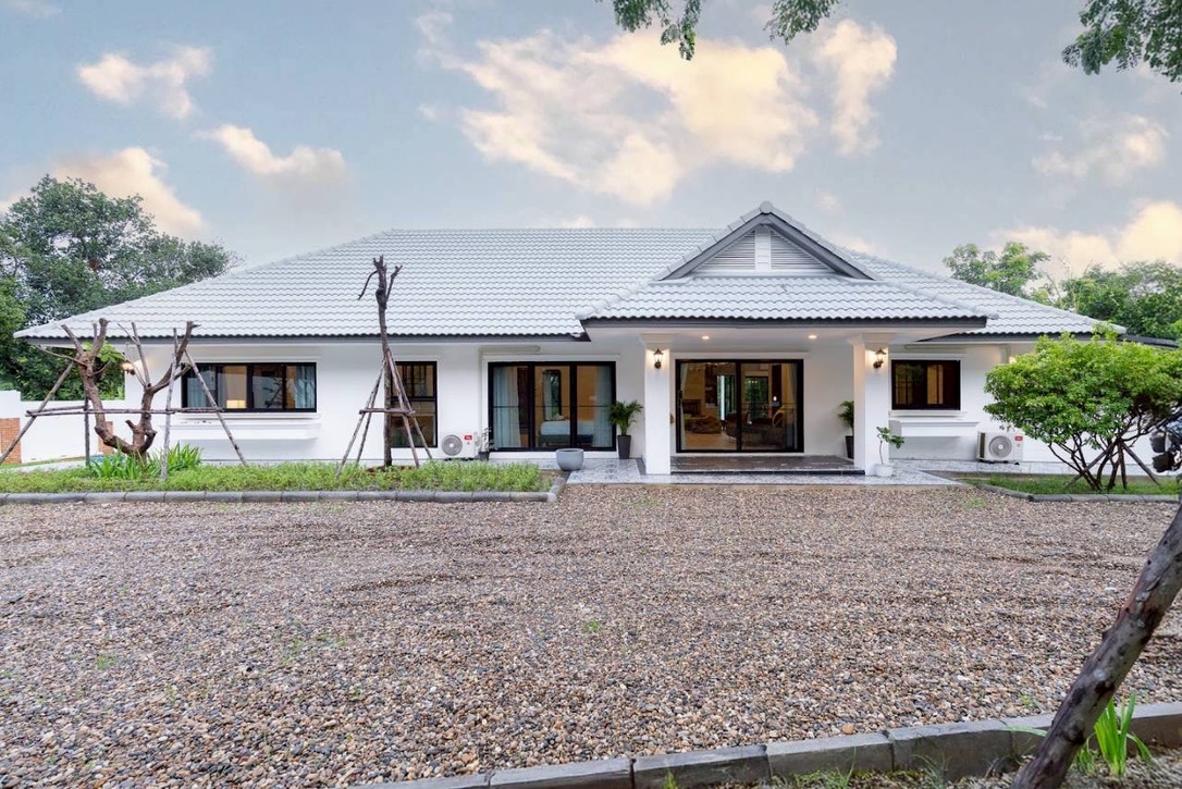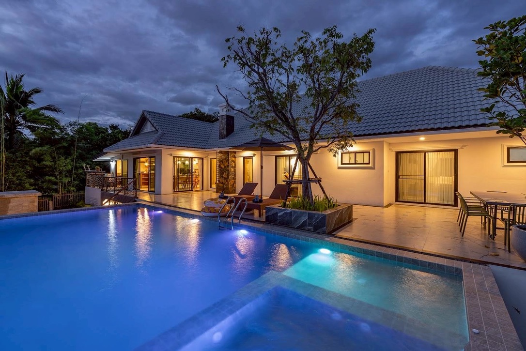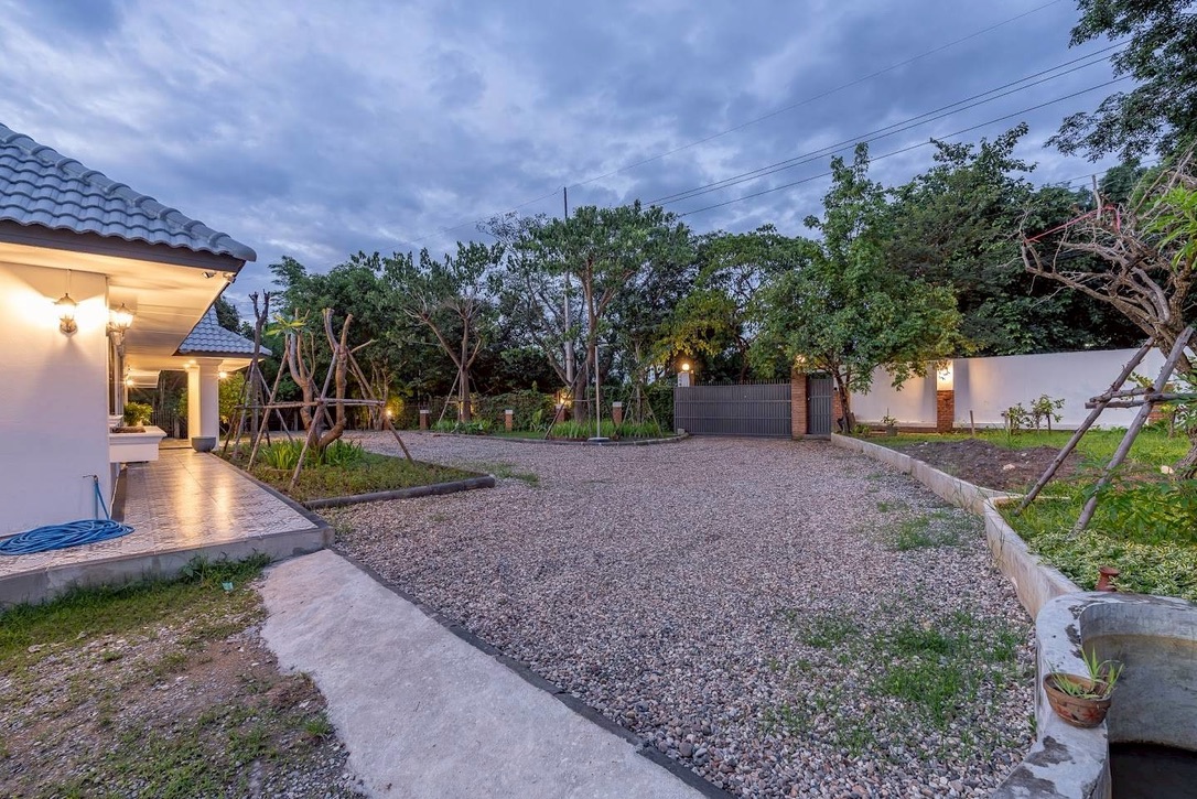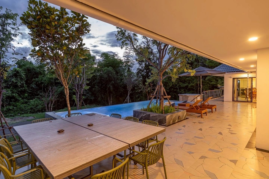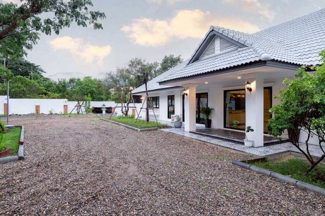 Set on over one rai of land (1,856 sqm), the villa is designed with contemporary comfort and functionality in mind. Features include an automated entrance gate, CCTV security system, eight air-conditioning units, bathtub and Jacuzzi, and a stunning infinity-edge swimming pool with a spacious terrace overlooking the mountains. A charming gravel driveway leads to the residence, and a cozy fireplace area in the front garden creates the perfect ambiance for cooler evenings.