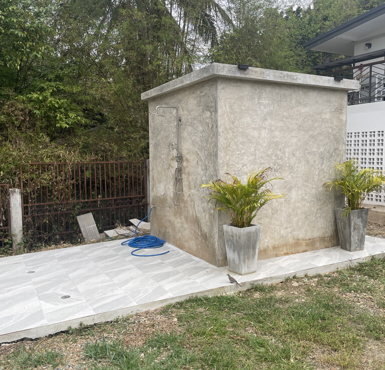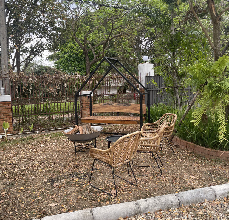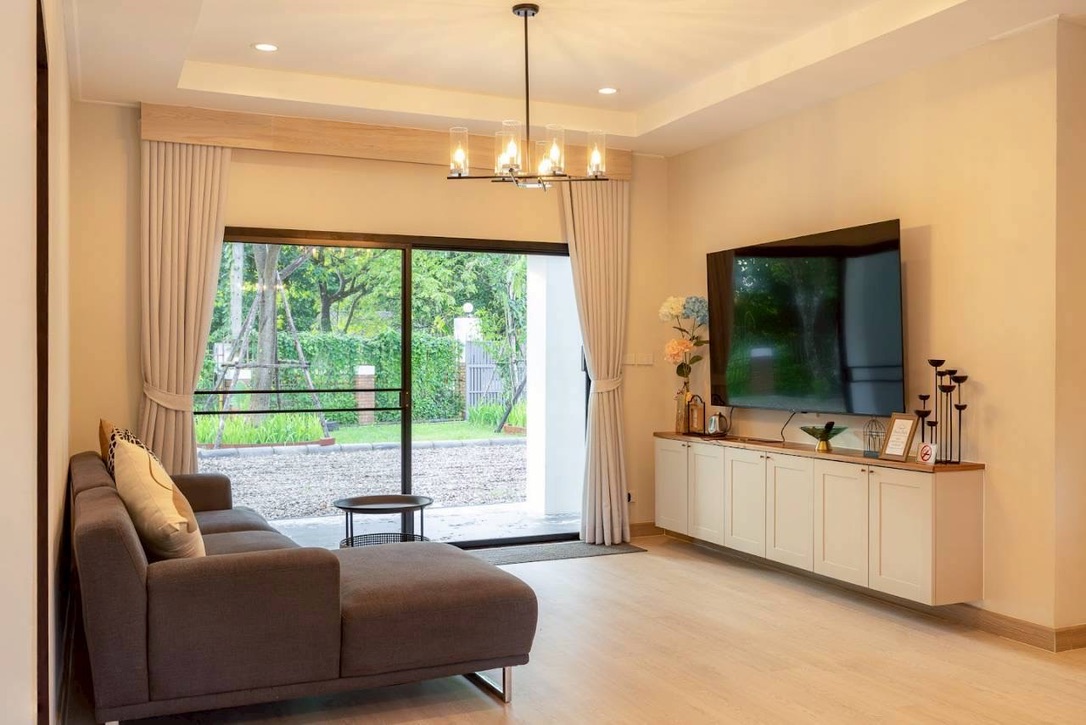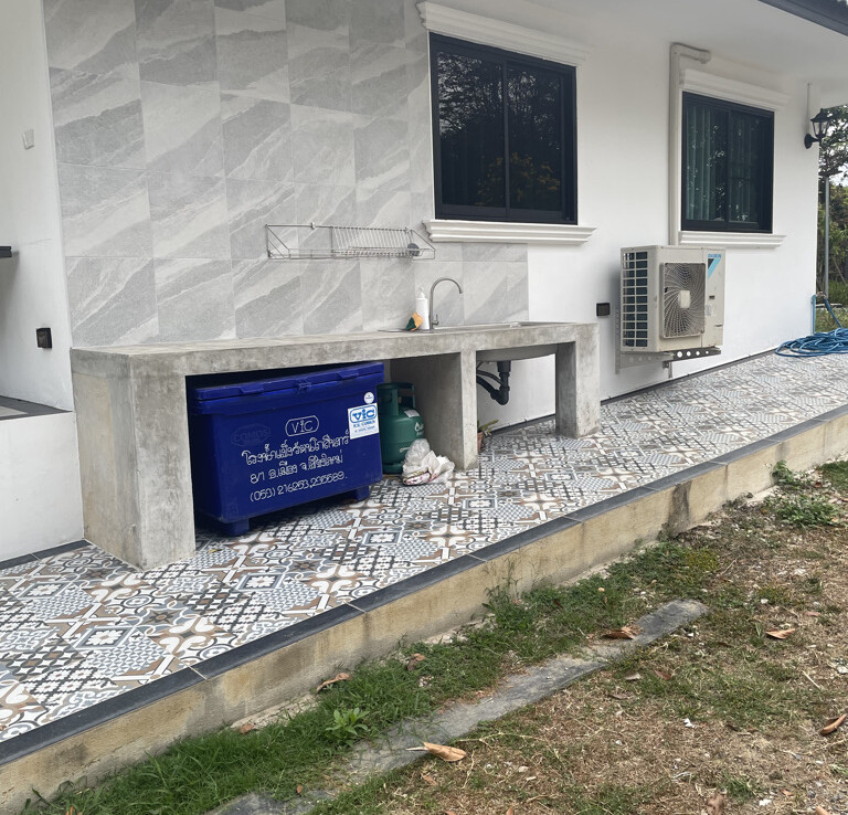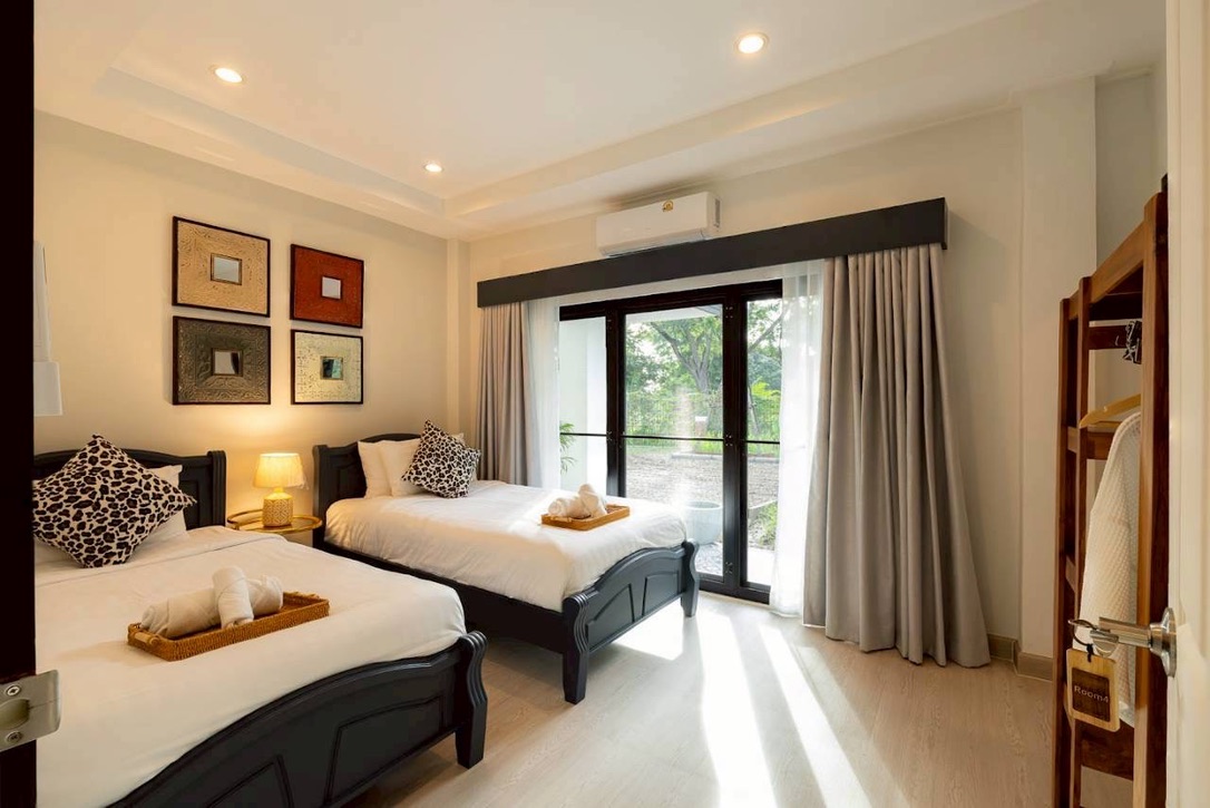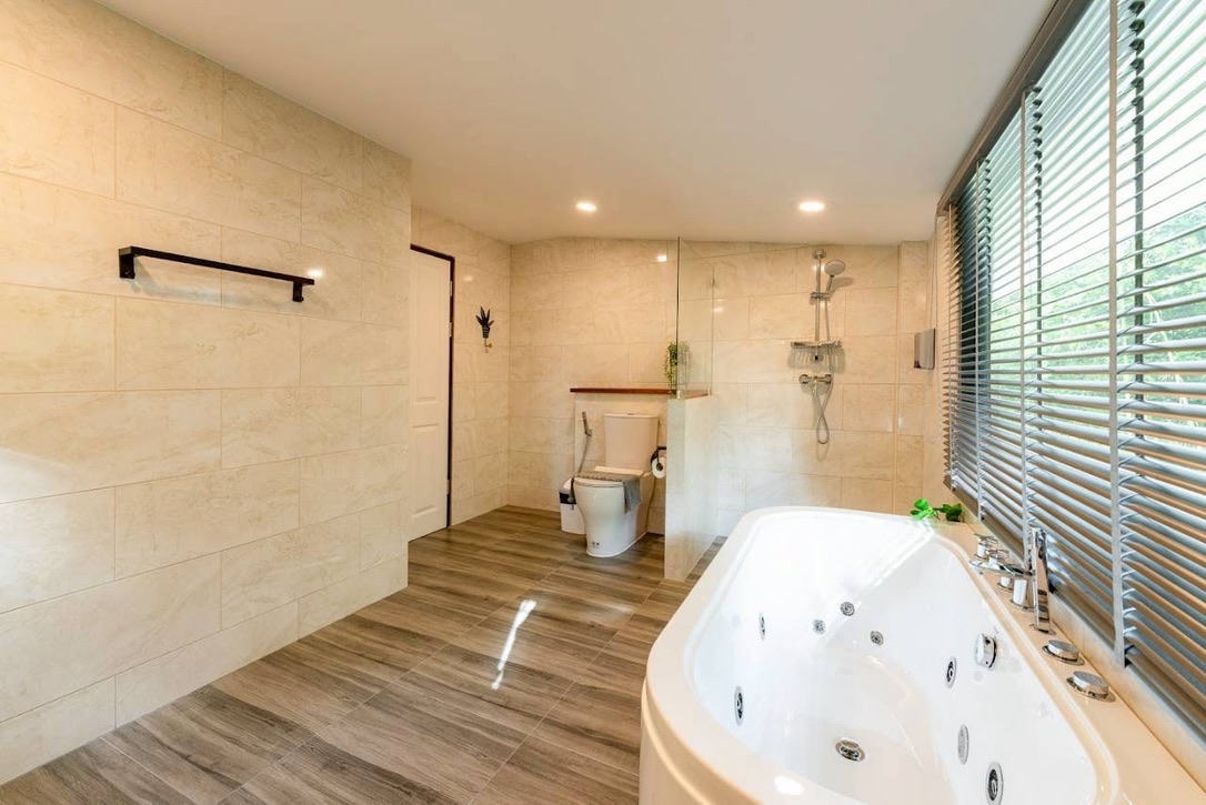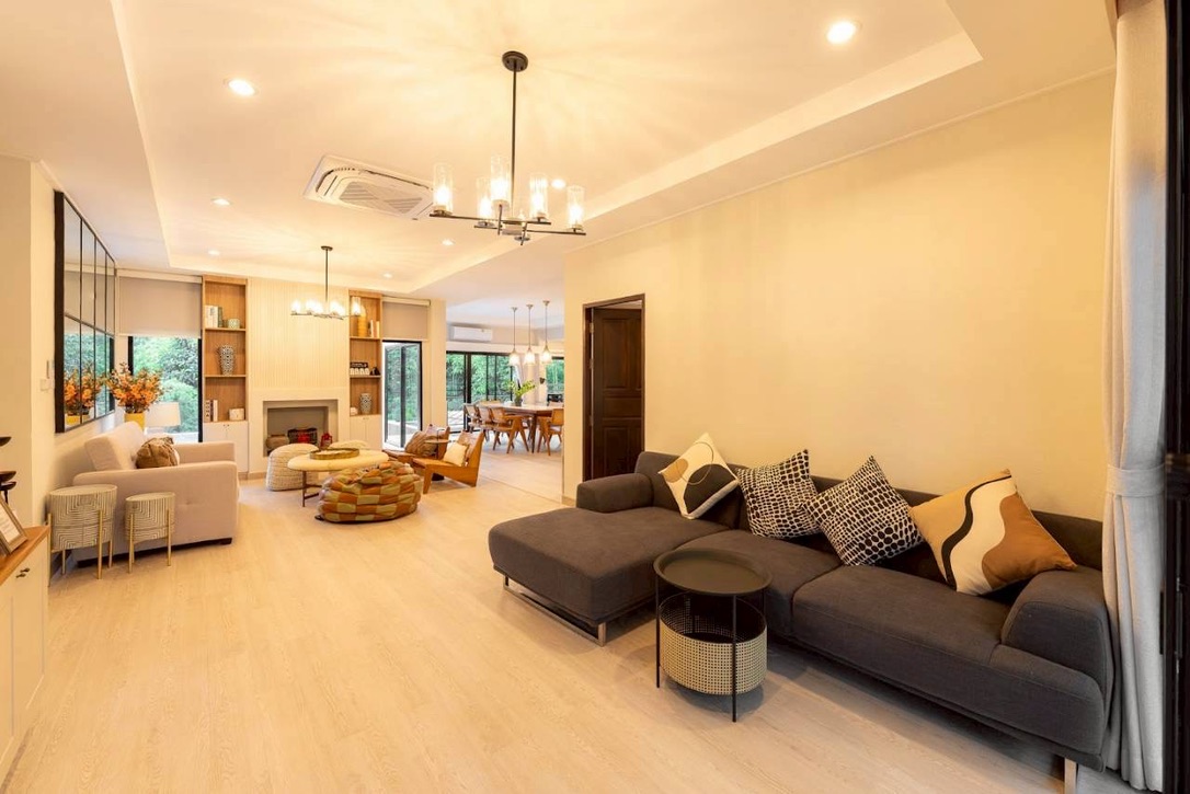 Set on over one rai of land (1,856 sqm), the villa is designed with contemporary comfort and functionality in mind. Features include an automated entrance gate, CCTV security system, eight air-conditioning units, bathtub and Jacuzzi, and a stunning infinity-edge swimming pool with a spacious terrace overlooking the mountains. A charming gravel driveway leads to the residence, and a cozy fireplace area in the front garden creates the perfect ambiance for cooler evenings.