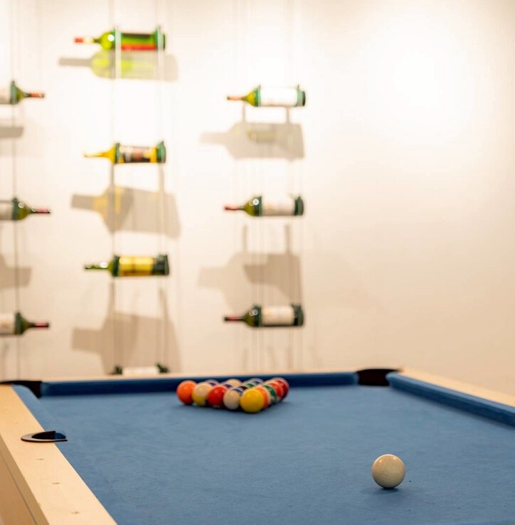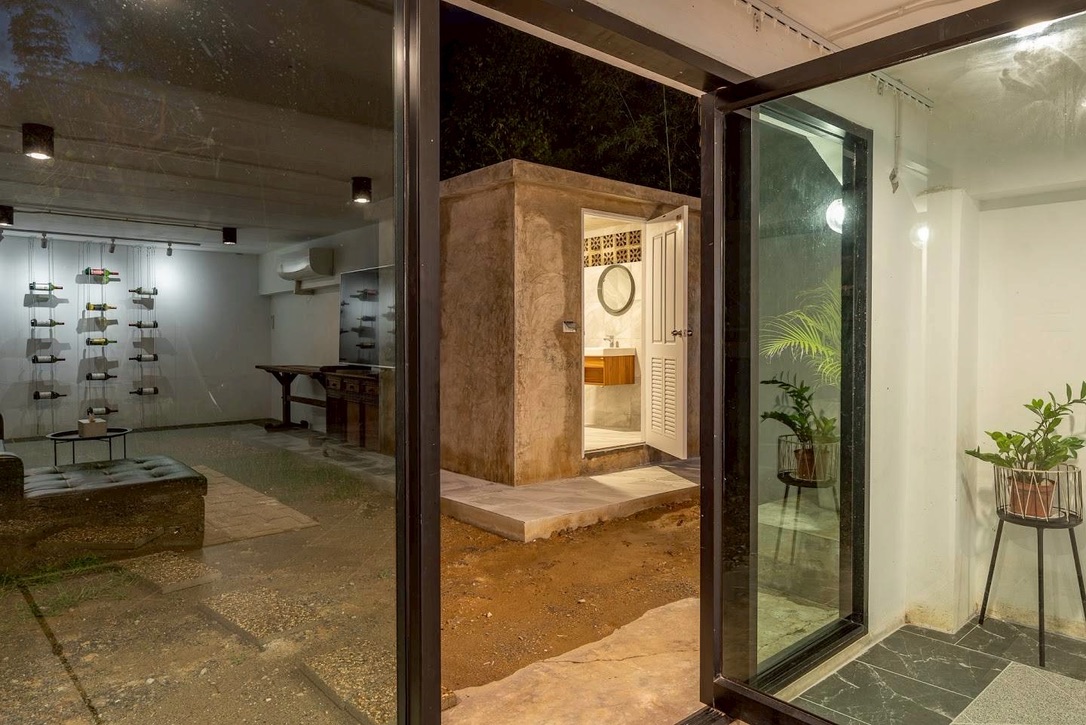 The lower level, accessible from the pool terrace, features a dedicated karaoke and recreation room. Poolside amenities include an outdoor shower, washing/pantry area, and a separate staff bathroom connected to the pool service room. The beautifully landscaped sloping garden is expansive and ideal for relaxation or stargazing.