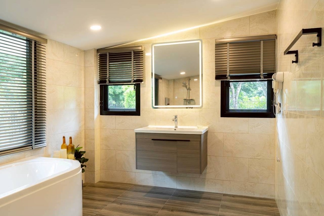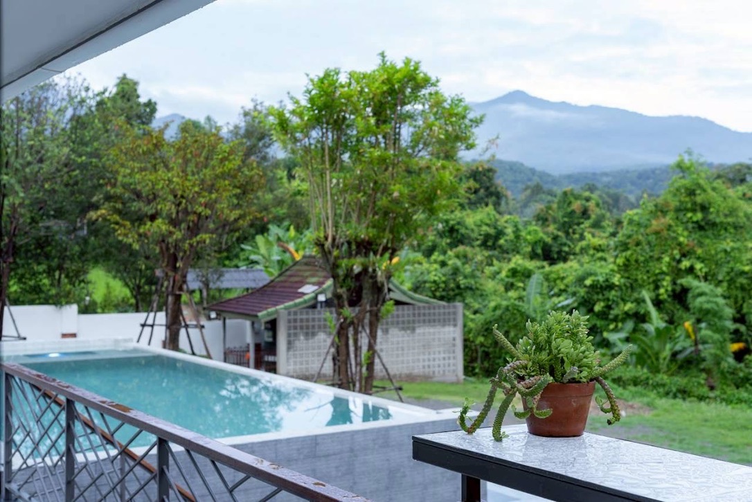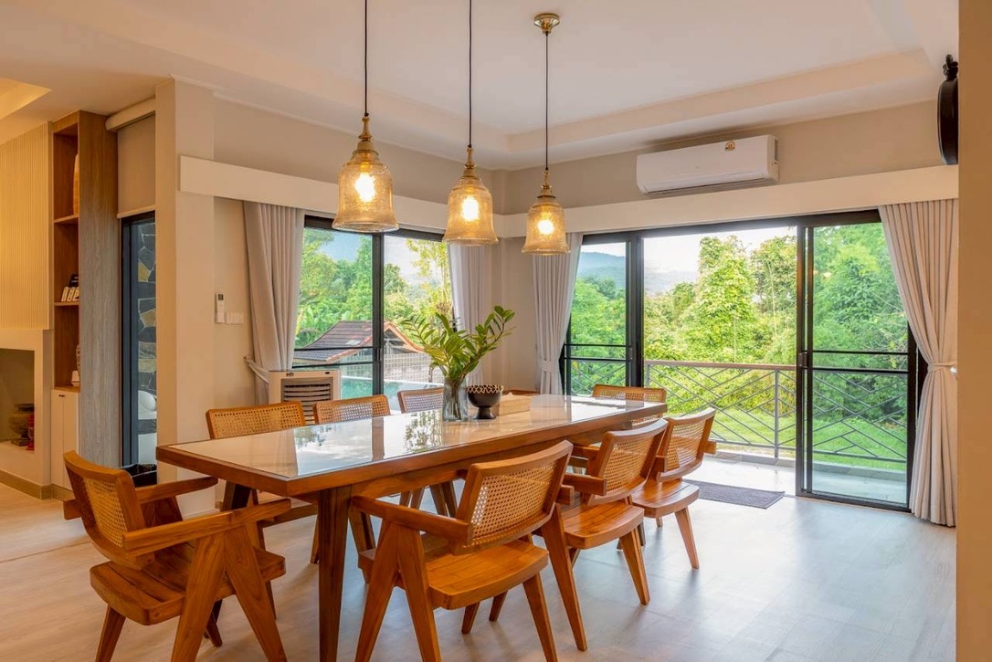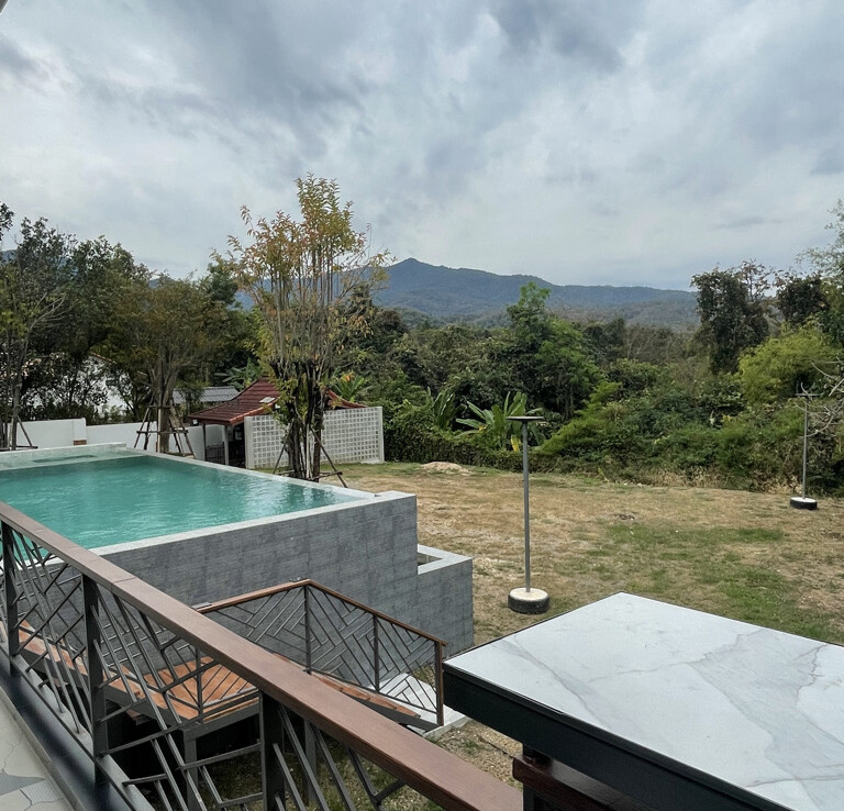 Luxuriously constructed modern 4-bedroom pool villa for sale, offered fully furnished and located in an exclusive area of Mae Rim, Chiang Mai. Nestled on a hillside in a tranquil natural setting, the property enjoys panoramic mountain views while remaining highly accessible, several restaurants and cafes in the area, just 5 minutes’ drive to Mae Rim Plaza, under 10 minutes to Makro and Kad Farang, within 20 minutes to Prem International School, and approximately 45 minutes to Chiang Mai International Airport.